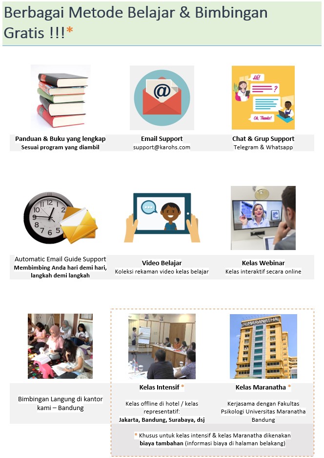 Semua siswa yang sudah terdaftar dalam kursus kami bisa mengikuti kelas online webinar ini bahkan boleh mengulang terus menerus tanpa biaya tambahan (gratis).