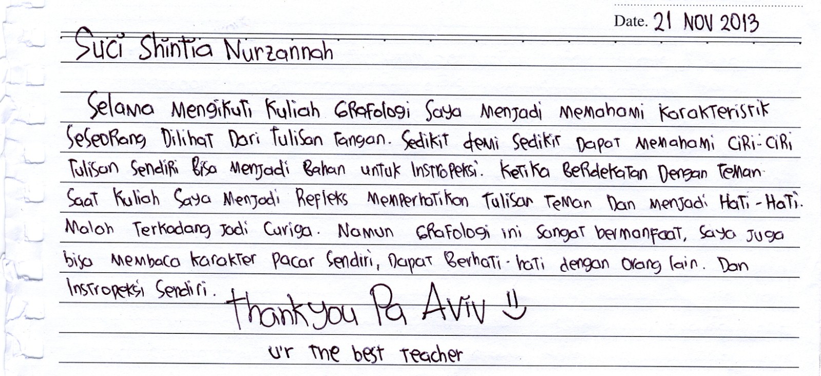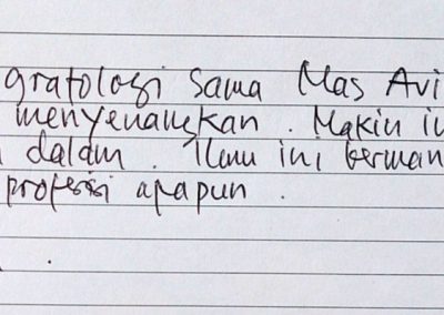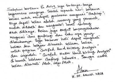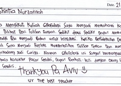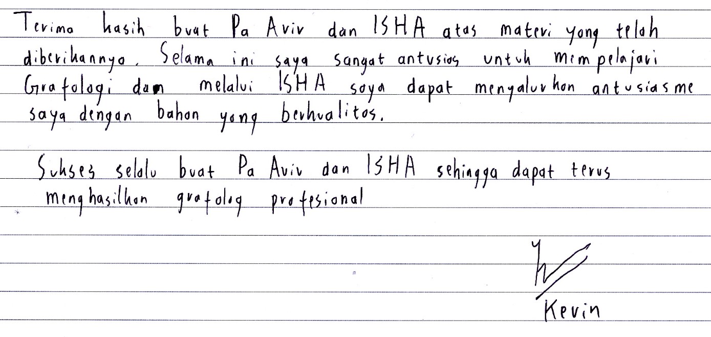 Langsung dibimbing oleh Kang Aviv (Syibly Avivy A. M), President KAROHS International School of Handwriting Analysis & Bu Fifie Nurofia (Master Grafolog)