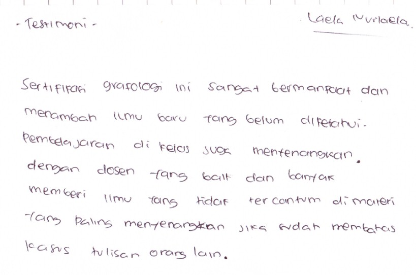 Materi yang Lengkap siap menemani Anda untuk membekali sebagai seorang calon Grafolog