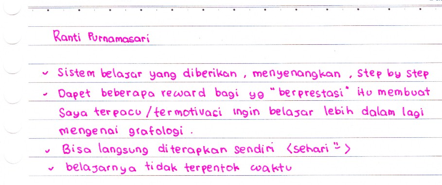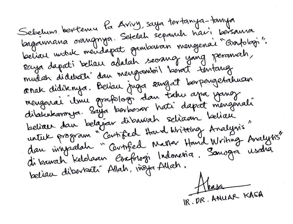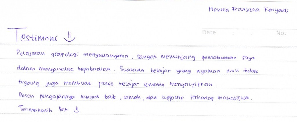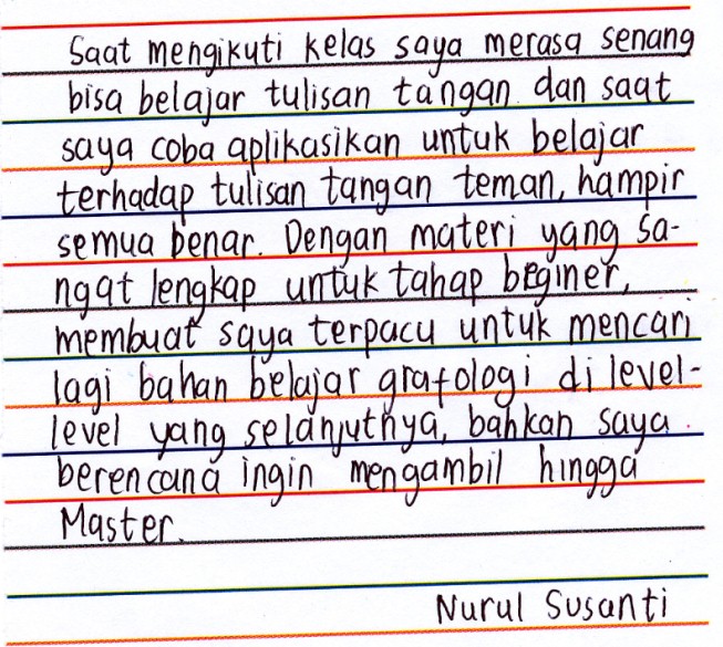 Mempelajari grafologi sejak 1998 dan mendalami grafonomi sejak 2012 dari berbagai sumber: