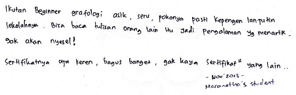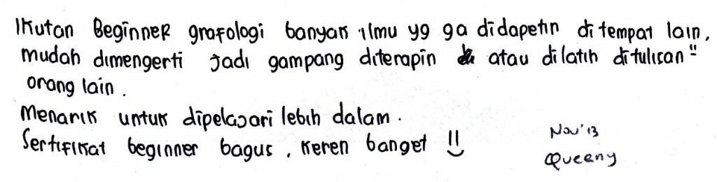 Manfaatkan hari-harimu dengan kursus grafologi bersama kami. Sampai Jumpa di program Applicative Course 🙂