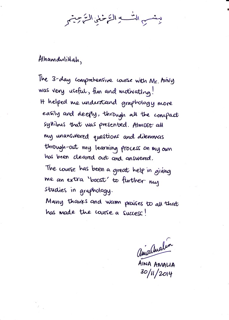 Program Kursus Grafologi Master memudahkan Anda dalam membuat laporan analisa Grafologi