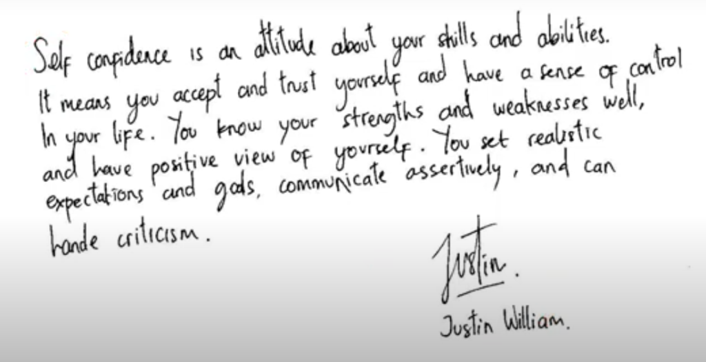 Seseorang dengan gaya penulisan seperti gambar di atas memiliki karakter yang cukup yakin dengan diri sendiri dan tidak meragukan kemampuannya. Seorang dosen penting untuk memiliki tingkat kepercayaan diri yang baik. Hal ini dapat mendukung proses pembelajaran yang baik hingga dapat menginspirasi mahasiswanya.