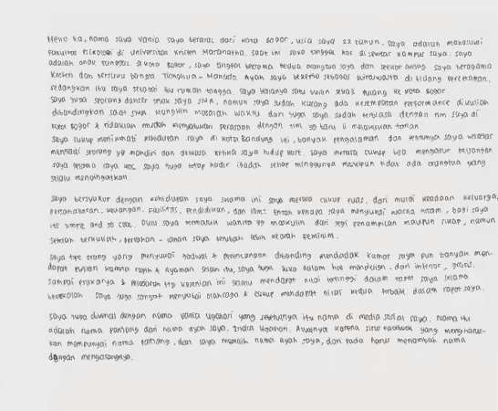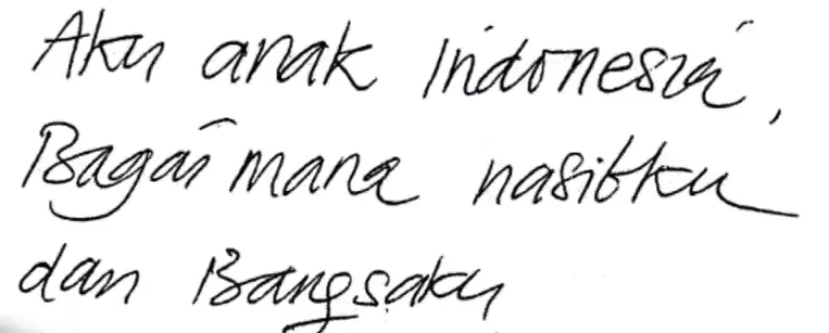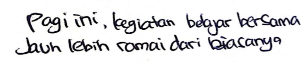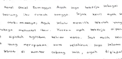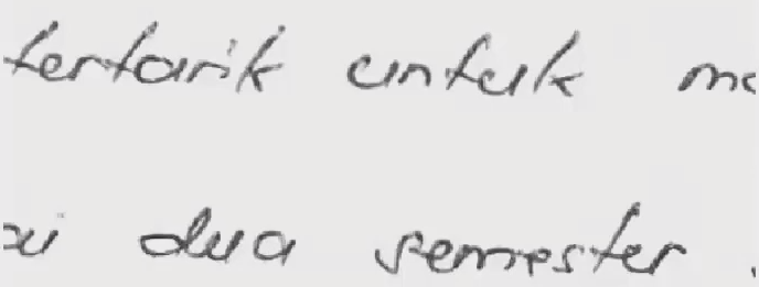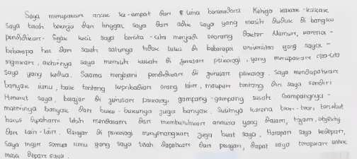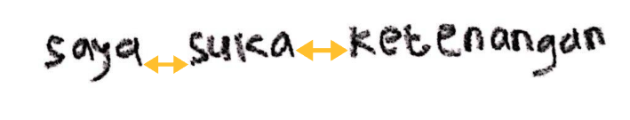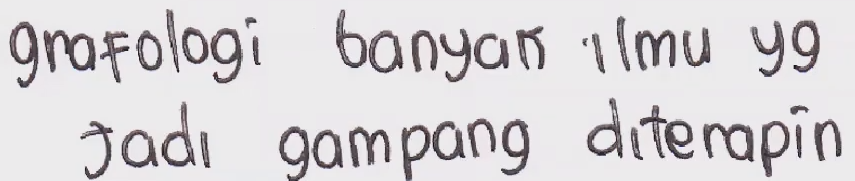 Jarak antar kata ini menunjukkan bagaimana penulis terhadap orang lain. Jika jarak antar katanya dekat maka penulis merupakan seseorang yang nyaman jika dekat dengan seseorang. Hal ini menunjukkan bahwa tulisan tangan ini menunjukkan karakter ekstrovert.