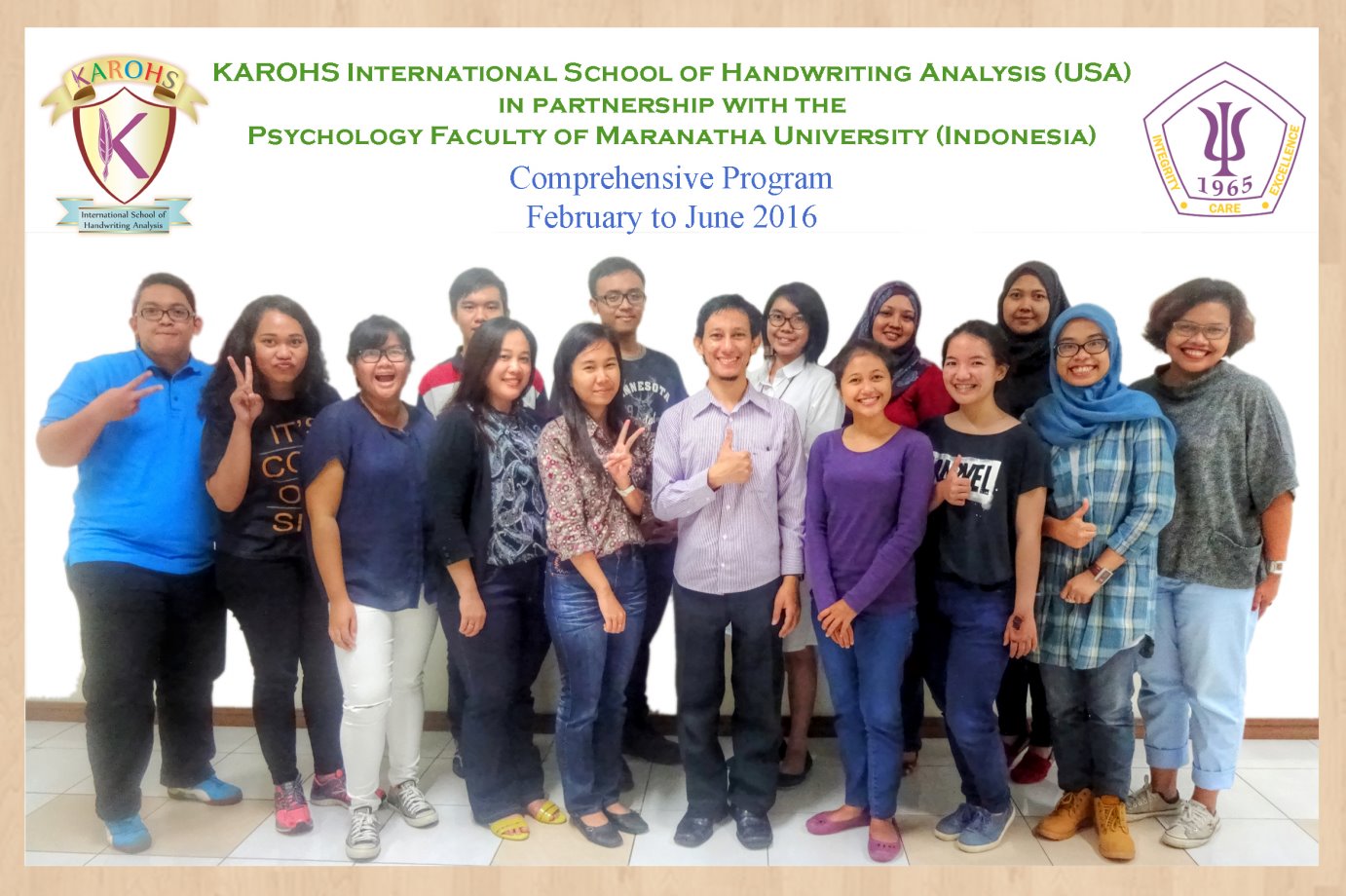 Sejak awal tahun 2013, KAROHS International School of Handwriting Analysis (ISHA)® bekerja sama dengan Fakultas Psikologi Universitas Kristen Maranatha Bandung untuk menyelenggarakan pendidikan grafologi dalam program sertifikasi Grafologi selama satu semester untuk setiap programnya.