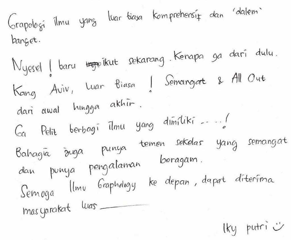 Materi ini mebahas tentang area-area otak dan hubungan antara tulisan dengan otak tersebut. Tidak itu saja, Anda juga akan dibekali dengan kaitannya gangguan pada otak (misal kecelakaan pada otak) dan jejaknya pada tulisan tangan.