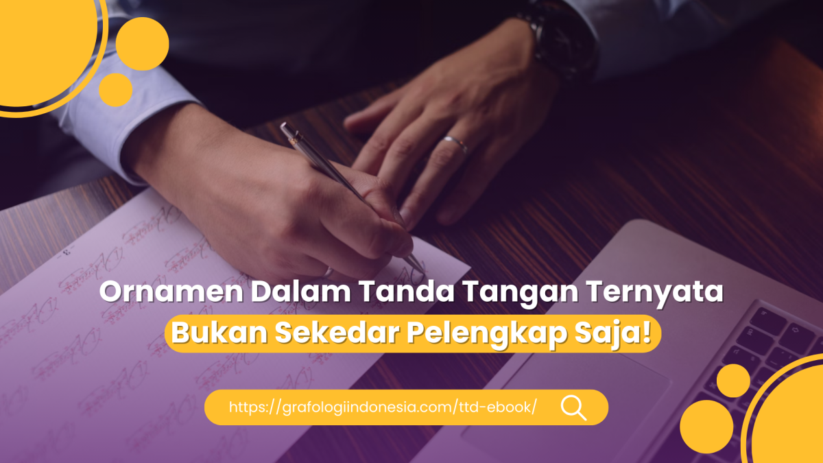Bagaimana sobat grafo? Mungkin anda baru sadar bahwa ornamen-ornamen dalam tanda tangan memiliki banyak macamnya dan bisa memberikan banyak maknanya juga. Sobat grafiko bisa mulai mencoba untuk menganalisis tanda tangan sobat grafiko sendiri. Masih penasaran dengan bentuk-bentuk ornamen lainnya secara detail? Sobat grafo dapat mengetahuinya melalui e-Book dari LKP Grafologi Indonesia di link di bawah ini!
