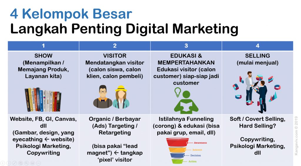 Setelah Anda memahami pentingnya Digital Marketing dan wawasan terkait, kami menyiapkan berbagai informasi rekomendasi untuk pendalaman materi dan teknisnya. Disaring dari pengalaman Kang Aviv dalam belajar pada guru-guru hebat (suhu) diluar sana. Memudahkan Anda dalam mencari guru-guru profesional dibidang ini dengan track record mengajar yang cukup “jempol”!