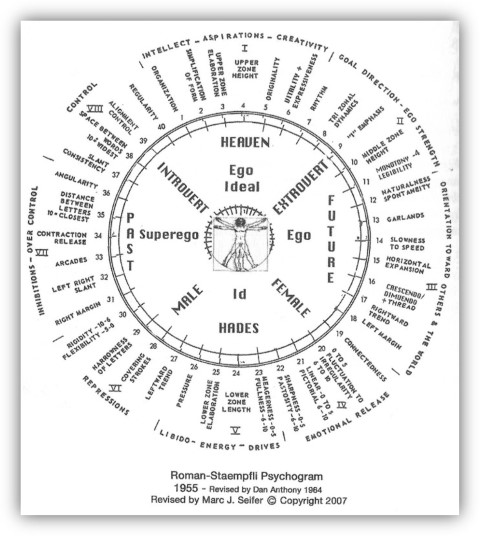 Dikembangkan pada rentang tahun 1946-1961 di New School for Social Research. Validasi spesimen ini telah dilakukan untuk mengecek aspek-aspek dalam analisa tulisan tangan dan telah dipublikasi di jurnal ilmiah Grafologi. Psikogram seperti ini serta turunannya masih cukup sering dipakai di sekolah-sekolah grafologi di Amerika (USA) sana.