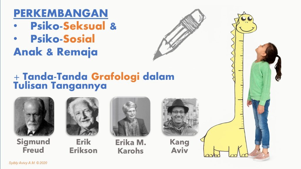 Menyambung bahasan sebelumnya, disini Anda akan belajar cukup lengkap berkaitan dengan urutan perkembangan Psikoseksual (Freud) & Psikososial (Erikson), sehingga Anda bisa melihat periode-periode ‘normal’ perkembangan anak kecil. Tidak itu saja, Anda juga akan dibekali dengan tanda-tanda dalam tulisan tangan yang sesuai dengan rentang perkembangan tersebut.